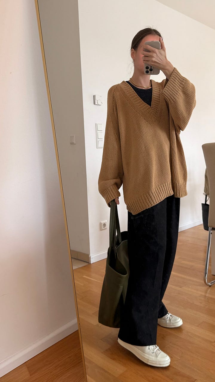 I’m really into V-neck sweaters layered over a white or black crew neck top. While I like the original version from Róhe, it was such a joy to rediscover this one from Babaà in my wardrobe (from my pregnancy days). This just feels really fresh without compromising on style and warmth.